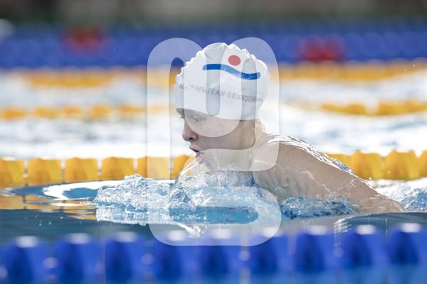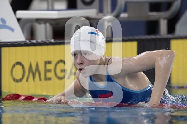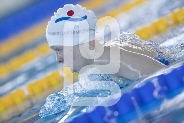 schwimmt beim Wettkampf ohne Schwimmbrille